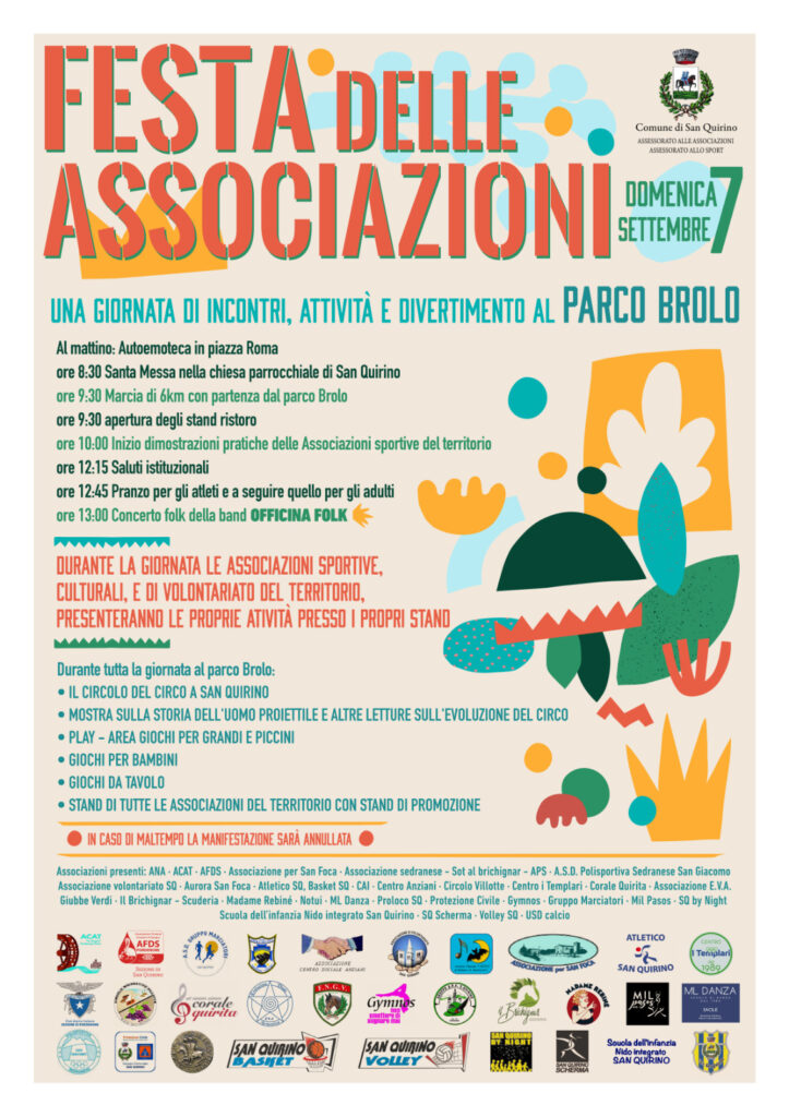 Domenica 7 Settembre saremo presenti alla festa delle Associazione del Territorio organizzata dal Comune di San Quirino presso il Parco Brolo.