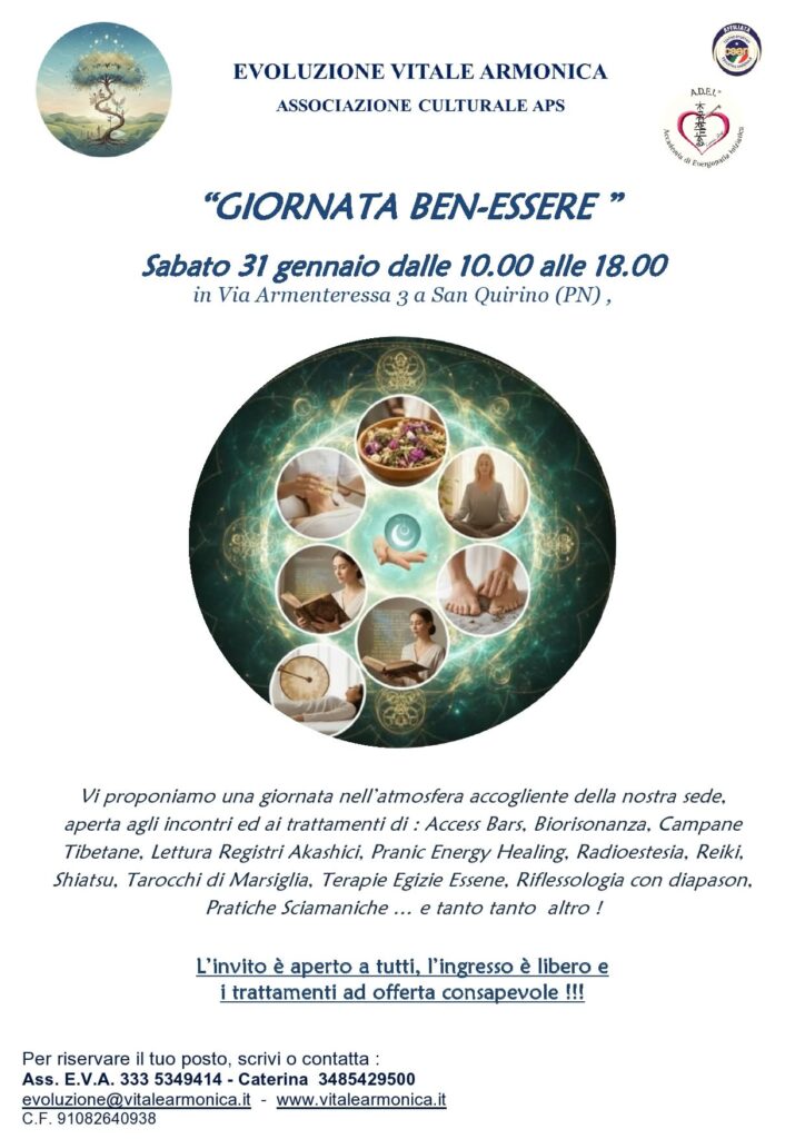 Eccoci al primo appuntamento del nuovo anno con le giornate del benessere, aperte a tutti!!! Vi aspettiamo!!!